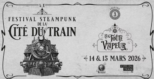 A Toute Vapeur a lieu le weekend du 14 et 15 mars 2026 dans le superbe écrin qu’est La Cité du Train à Mulhouse. Dans le plus grand musée ferroviaire en Europe, vous découvrirez le Steampunk dans toute sa diversité !