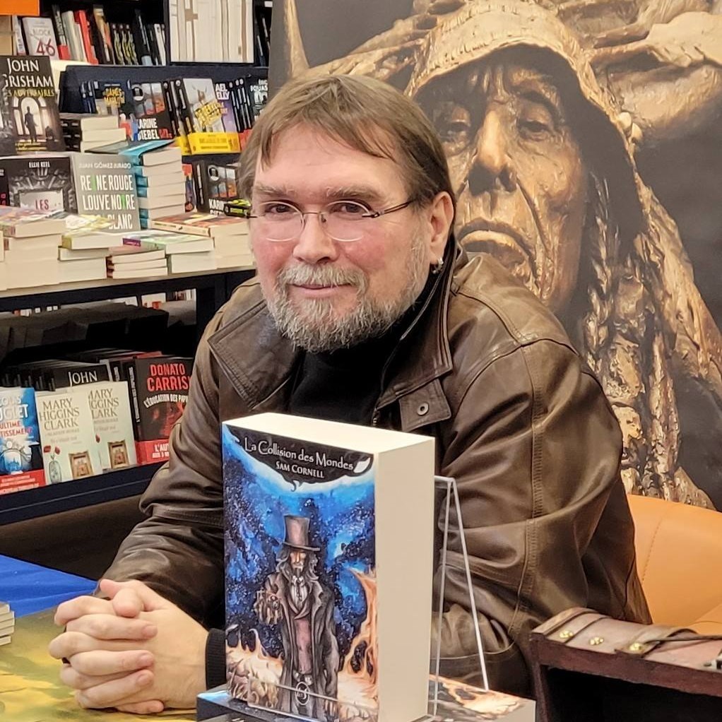 Sam CORNELL : Après avoir abordé aux USA les périodes contemporaines et le futur proche dans mes derniers écrits, je retourne à mon cocktail de prédilection en mixant histoire et fantastique (dans la Bretagne disputée du XIVe siècle, insurgée du XVIIIe et actuelle). Ce sont des périodes intéressantes à mêler aux légendes et au folklore breton ou des choses plus étonnantes encore. J’ai terminé une longue période de recherche documentaire. Je n’ai pas encore de titre précis en tête pour ce manuscrit, mais pendant un moment je l'ai appelé « Au nom du Père, du Fils, et du Mauvais Esprit ». On verra. Il est possible que j’écrive auparavant une nouvelle courte historique (au XIXe siècle), sous une forme particulière (et sans le moindre imaginaire). J’aime explorer différents genres et styles (comme avec « Fortune de Mer » dans l’anthologie de poésie fantastique « Les Chants des Belladones », sortie en 2025 chez Malpertuis).