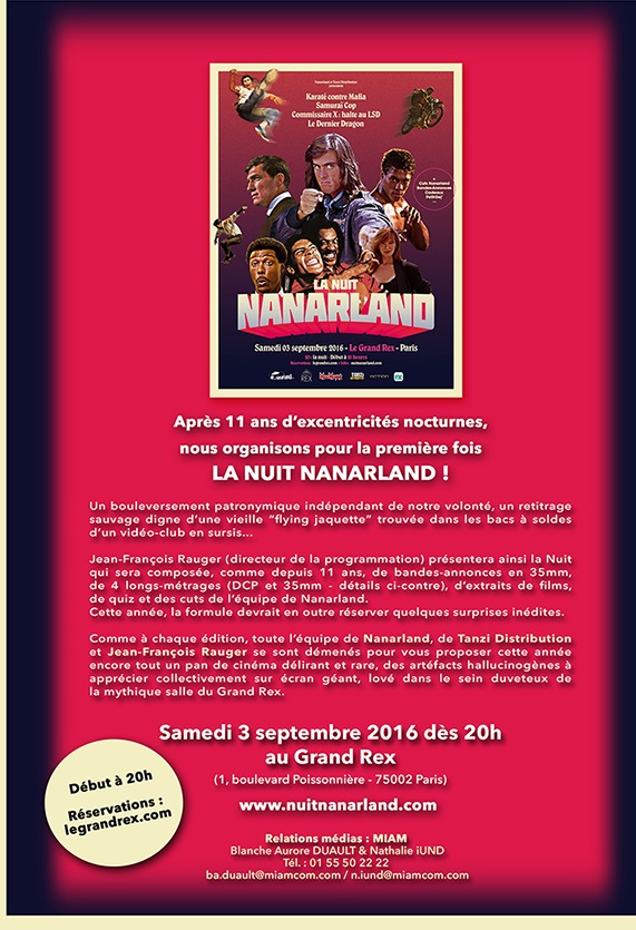 Rendez-vous le samedi 3 septembre au Grand Rex, 2 rue Poissonnière 75002 Paris, à partir de 20h00 pour un soirée nanards. au programme: